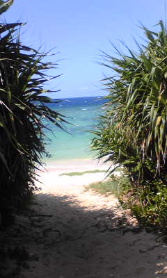 サトウキビ畑の奥に見えるビーチが呼んでいる